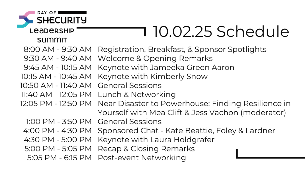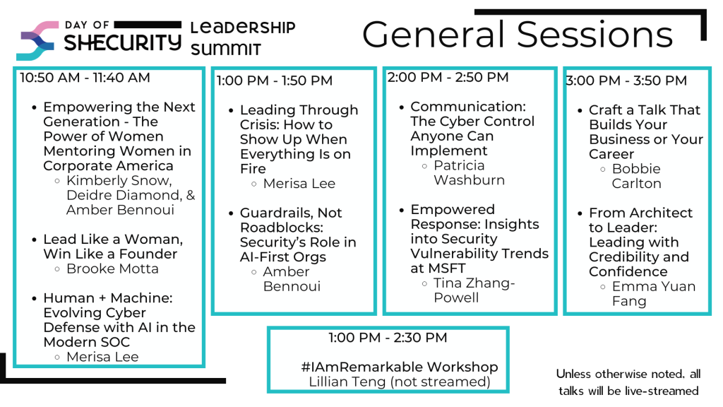 - 10:50 AM – 11:40 AM, Human + Machine: Evolving Cyber Defense with AI in the Modern SOC with Merisa Lee